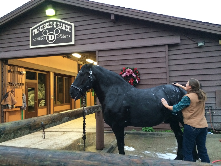 But back to Cinderella’s ponies, who also reside over at Tri-Circle-D Ranch. This year the first ever white Shetland pony was born at the ranch, a sweet little girl named Lilly (named after Walt Disney’s wife). Her mother, Lady, and her father, Ferdinand, are currently part of the team who pull Cinderella in her pumpkin coach at Magic Kingdom Park. When Lilly is two, she’ll start training to do the same and could make the team after about a year. For now, you can visit Lilly at the show pasture near the barn. The ranch also has horseback riding, pony rides (for little kids as ponies only grow to be about 500lbs), wagon rides, holiday sleigh rides, horse-drawn carriage rides, the works. You can even catch a glimpse of Khan, a Thoroughbred-Percheron big black horse named after a character in Mulan but who actually gets ridden by the Headless Horseman in Mickey’s Halloween parade. Most days you can take a tour of the barn and on Thursdays the farrier drops by to work his magic.